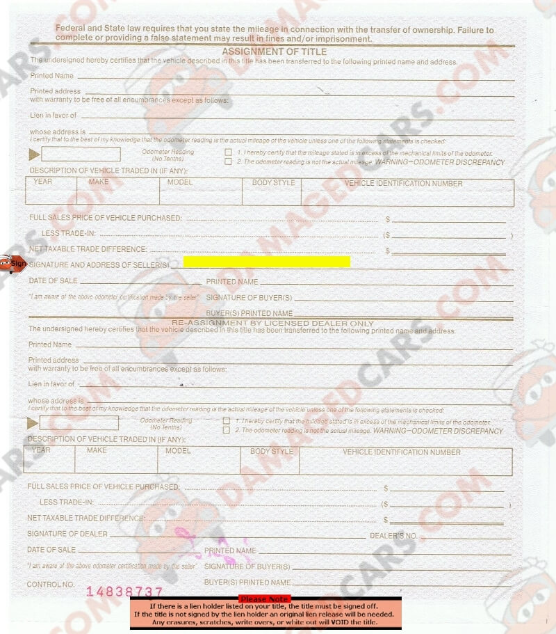 It is important to be prepared when you are ready to sign a car title. The sellers name MUST match the name of the owner(s) on the front of the title. Verify you are signing correctly BEFORE signing the title! Incorrect signatures, signatures in incorrect locations,erasures and mark outs may void the title.