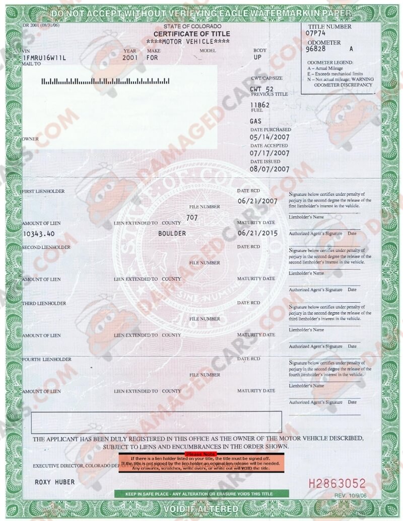 if you are selling a vehicle in Colorado and have lost your title you need to apply to the registration office in your county for a duplicate before completing the sale. If you buy a vehicle without a title or can't get a duplicate a title, you need to complete a surety bond to establish ownership.