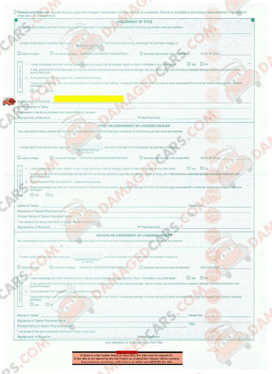 It is important to be prepared when you are ready to sign a car title. The sellers name MUST match the name of the owner(s) on the front of the title. Verify your are signing correctly BEFORE signing the title! Incorrect signatures, signatures in incorrect locations, erasures and mark outs may void the title.