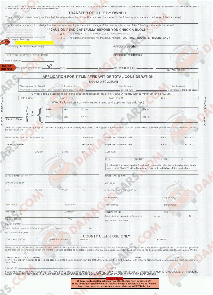 It is important to be prepared when you are ready to sign a car title. The sellers name MUST match the name of the owner(s) on the front of the title. Verify your are signing correctly BEFORE signing the title! Incorrect signatures, signatures in incorrect locations, erasures and mark outs may void the title.
