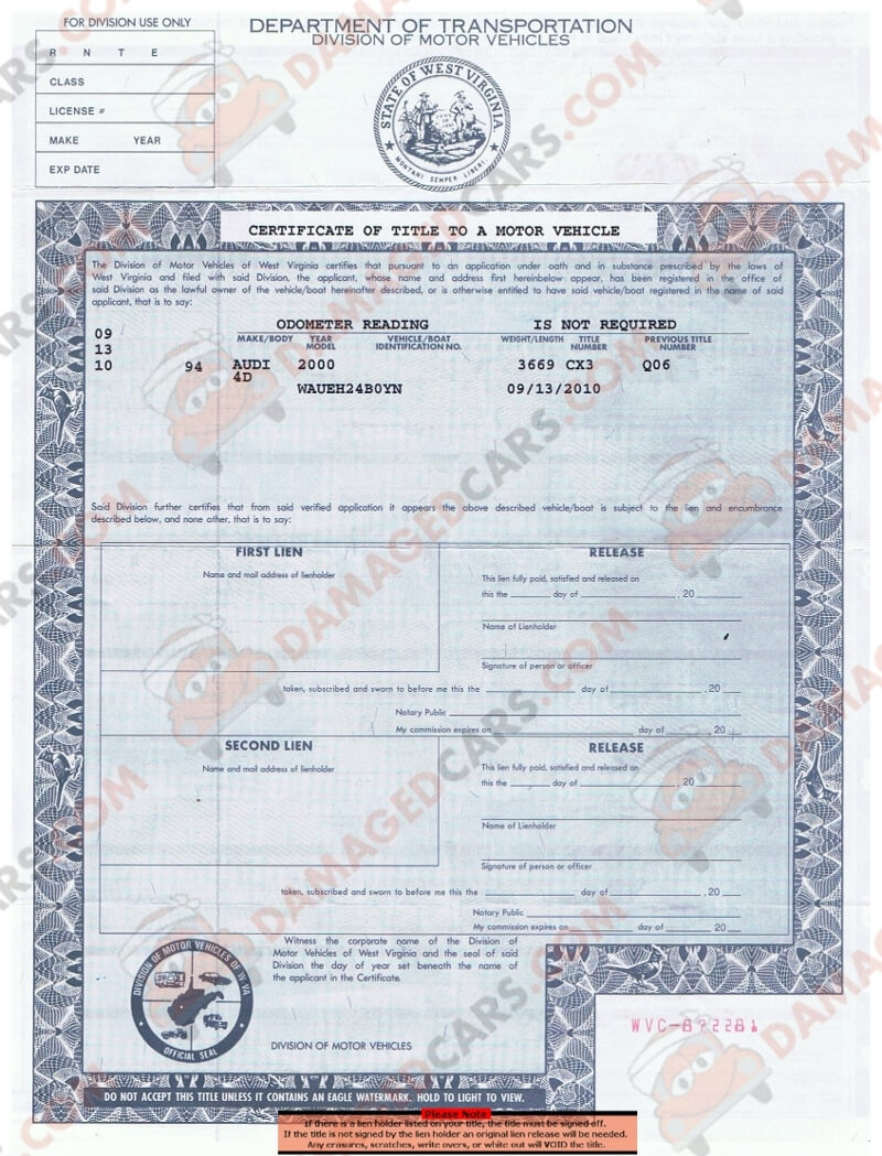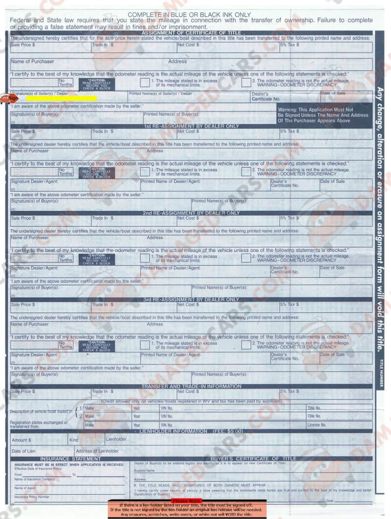 West Virginia Motor Vehicle Title Instructions